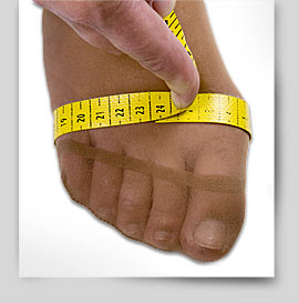 Całym ciężarem ciała stanąć na centymetrze krawieckim i zmierzyć obwód stopy od miejsca gdzie "wyrasta" mały palec do miejsca gdzie jest tzw. haluks (kość przy dużym palcu). Będzie to tęgość do wyboru z tabeli tęgości.